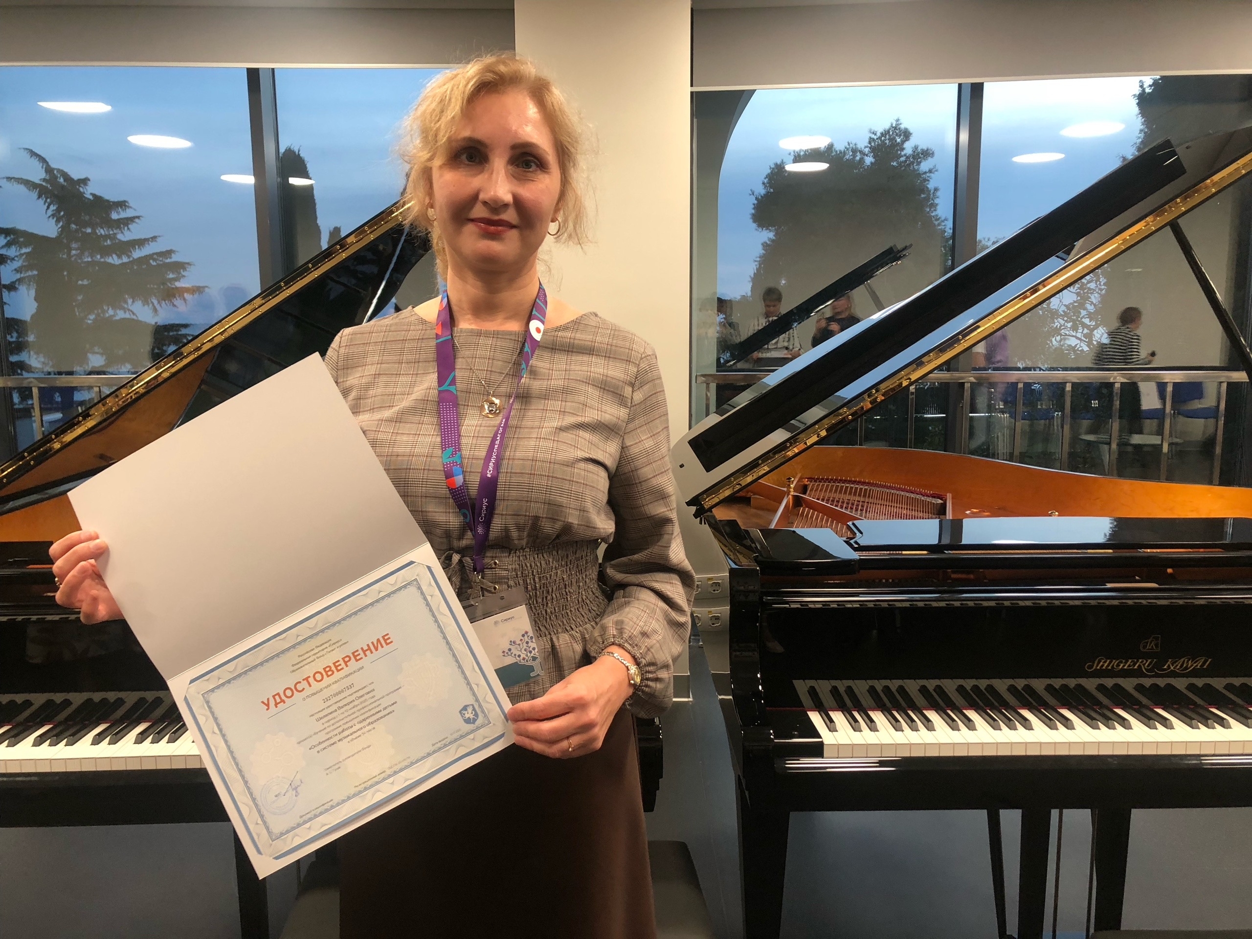 Преподаватель отдела «Фортепиано» Петрозаводской детской школы искусств им. М.А. Балакирева Шеляпина Валерия Олеговна стала участником осенней стажировки педагогов по программе «Особенности работы с одаренными детьми в системе музыкального образования», которая проходила в Образовательном Центре «Сириус» с 2 по 6 ноября.