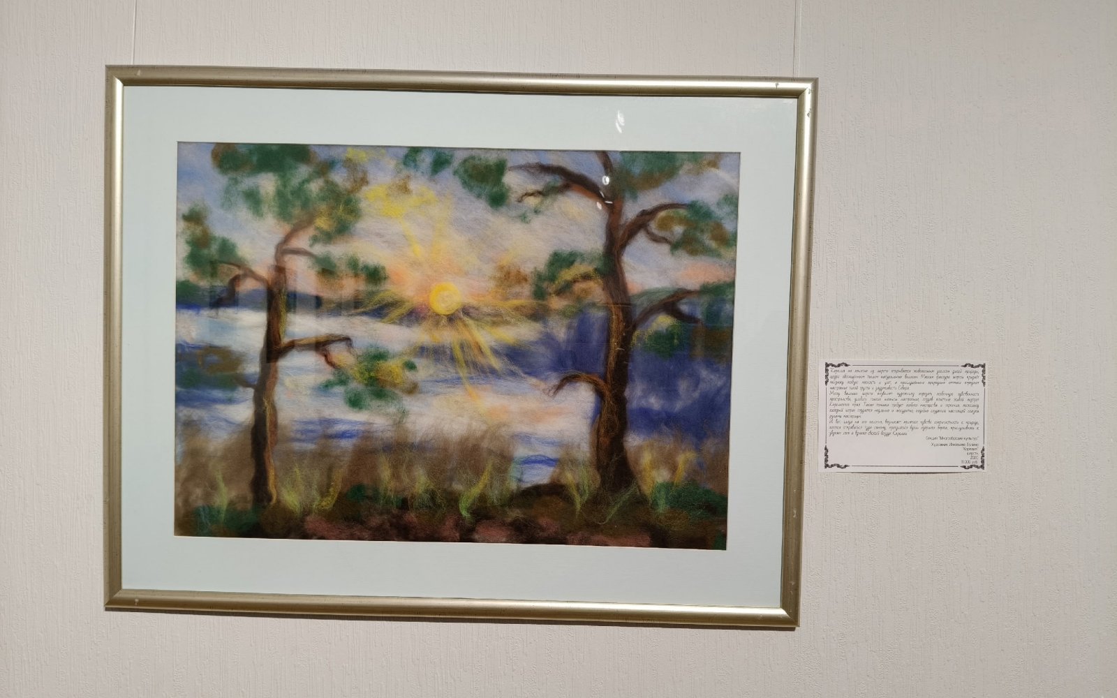 Среди участников выставки – преподаватель Петрозаводской детской школы искусств им. М.А.Балакирева Галина Юрьевна Игнатьева. Её работа «Карелия», которая выполнена методом валяния шерсти (техника «фелтинг»), стала «представителем» секции «Многообразие культур».Техника «фелтинг» отражает традиционные ремесла разных народов мира. И корни этой техники уходят в далекое прошлое.