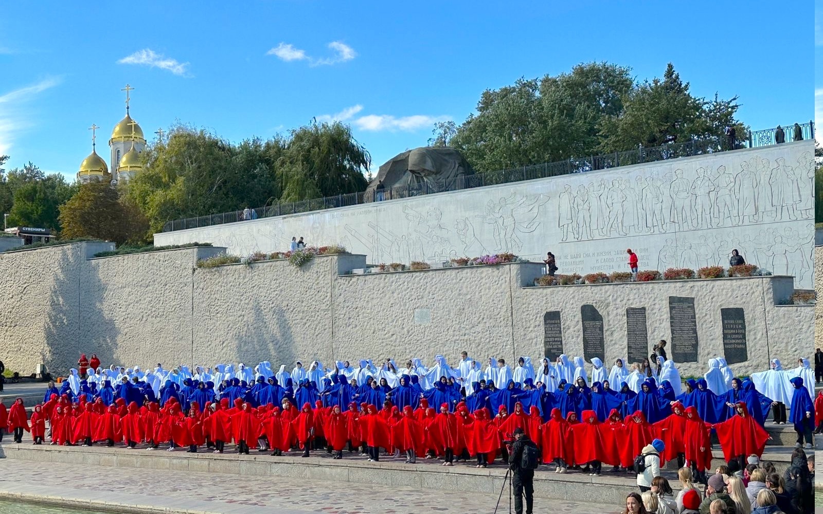 «Запомнилась акция на Мамаевом кургане. Я познакомилась с детьми из других городов. Во время построения флага очень красиво звучал оркестр, а ещё мы увидели смену почётного караула!...» (Диана Тарачева);