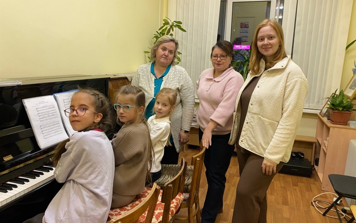 Преподаватели отдела «Фортепиано» Колесова О.В., Романова М.С. и Шилоносова М.В. провели открытый урок вместе со своими учениками. Особенностью занятия стала работа в редком для школы формате — ансамбле в шесть рук.