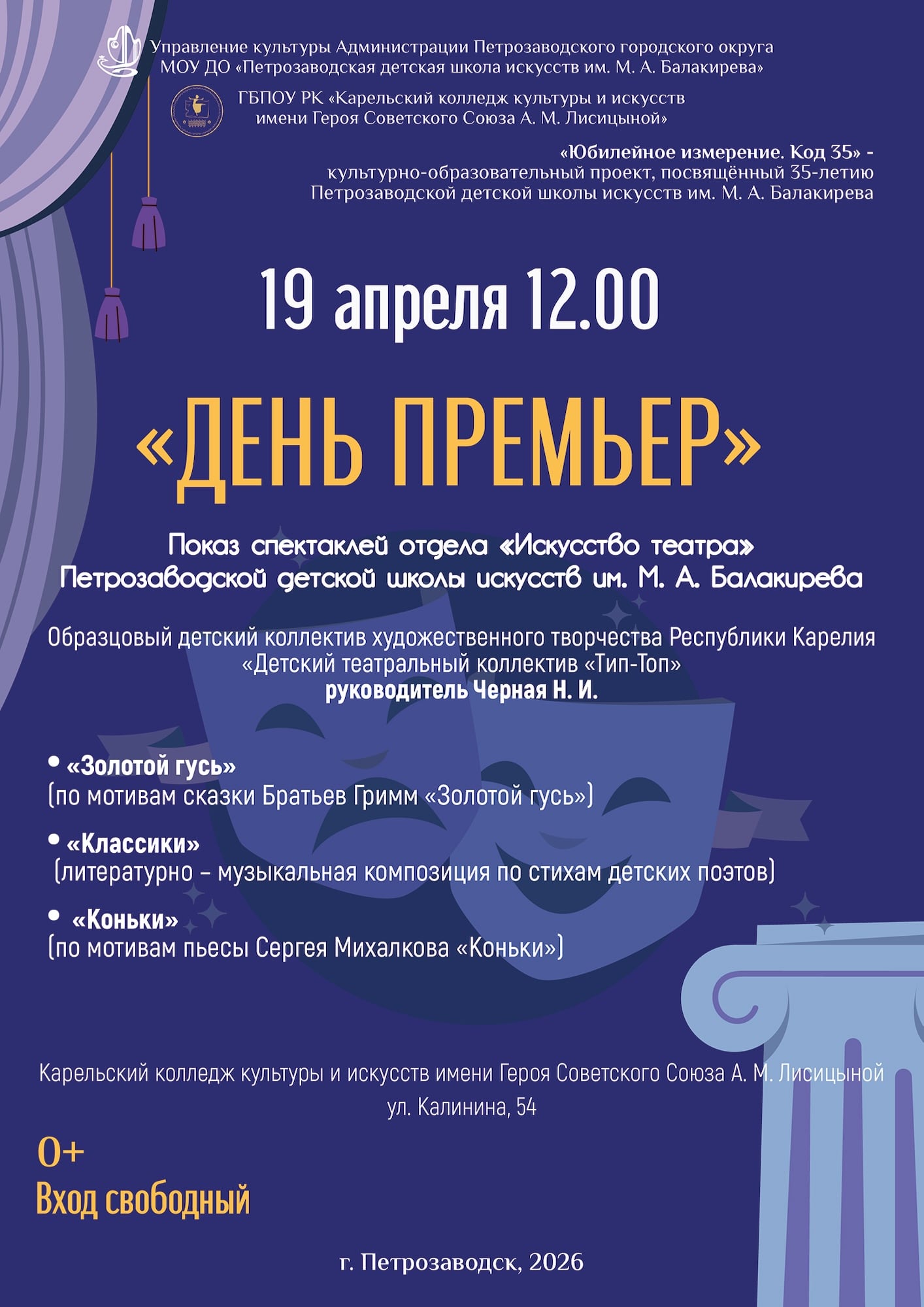 Показ спектаклей отдела «Искусство театра» Петрозаводской детской школы искусств им. М. А. Балакирева.